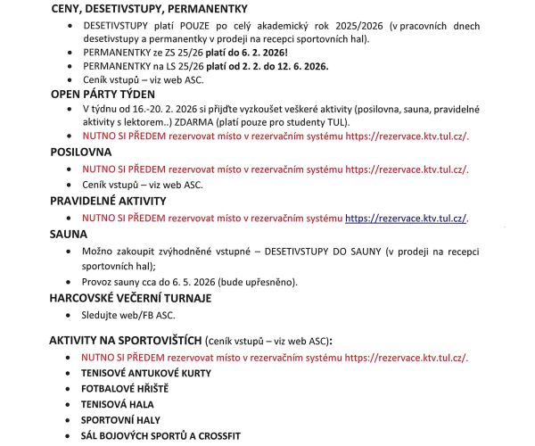 Důležité informace k zahájení provozu ASC_LS 25/26