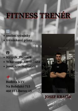 V rámci Akademického sportovního centra Vám nabízíme služby certifikovaného fitness trenéra z řady studentů. Posilovna se nachází v areálu budovy KTV (hlavní budova) v ulici Na Bohdalci 715. Osobní tréninky a další služby, případně další informace řešíte přímo s trenérem přes níže uvedené kontakty.