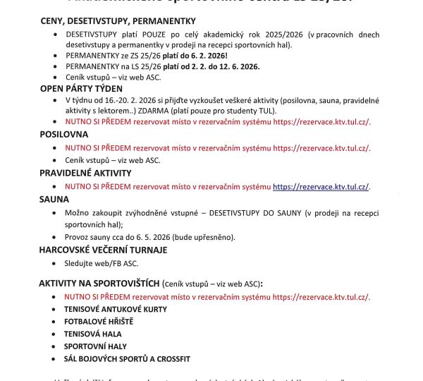 Důležité informace k zahájení provozu ASC_LS 25/26