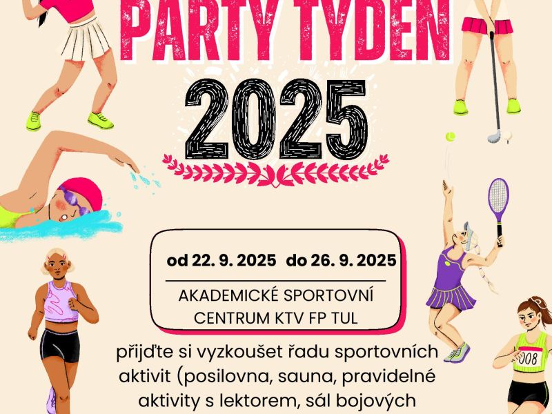 V tomto týdnu si studenti TUL mohou vyzkoušet řadu sportovních a relaxačních aktivit zdarma. Tak neváhejte a pojďte si k nám za sportovat. Těšíme se na Vás.